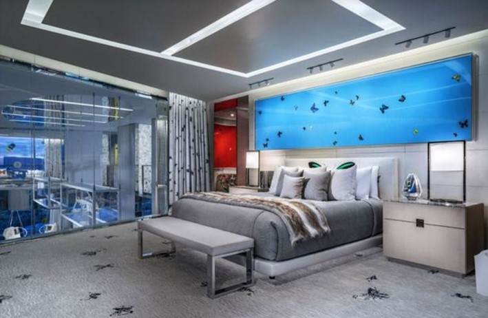 With a two-night minimum stay, the suite is located on the upper floors of the 40-story Palms Casino Resort, with a view of the shimmering lights of the Las Vegas Strip.